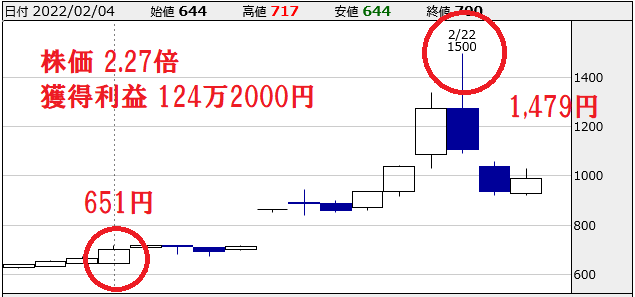 | 利益日/売値 | 2022.02.22 1,479円 |