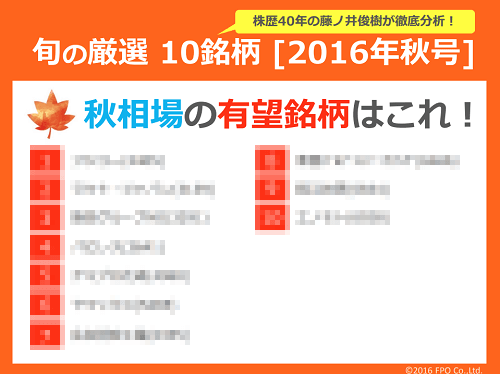 メールアドレスで登録してみると、2016年秋号に推奨した10銘柄が無料でもらえました。
