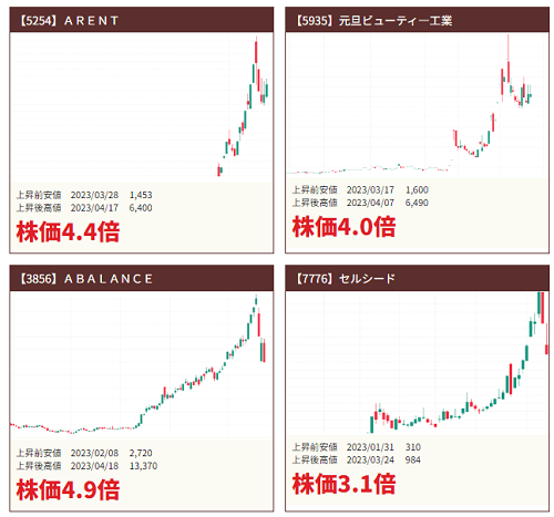 ほとんどの銘柄が2023年4月17日以前に推奨されたものばかりです。