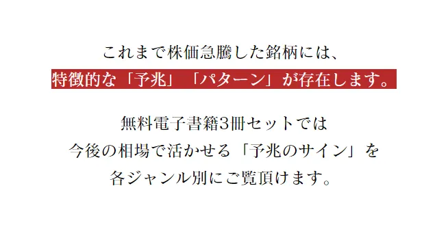 また、兆し~割安株編を最後まで読むと、最終的には兆しの割安急騰株を案内するという内容で締められています。
