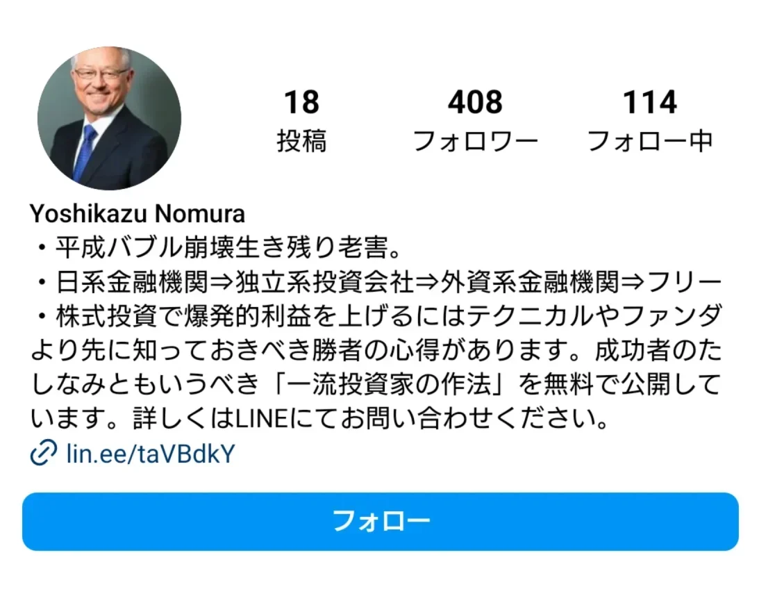 プロフィールにある「一流投資家の作法」は実際に公開されていませんが、本当に面識のない人に公開するつもりなら、投稿を非公開設定にして素性を隠している理由がわからないっす!